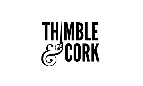 Wine and sewing classes in Houston, Texas are branded with League Gothic. The “I” is a needle threaded with the Abraham Lincoln ampersand.