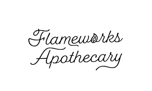 A small batch soy candle company in Ossian, Indiana. This logo refresh brightened the brand with a playful script font, while using a flame connected to the text - a nod to the original logo. flameworksapothecary.com